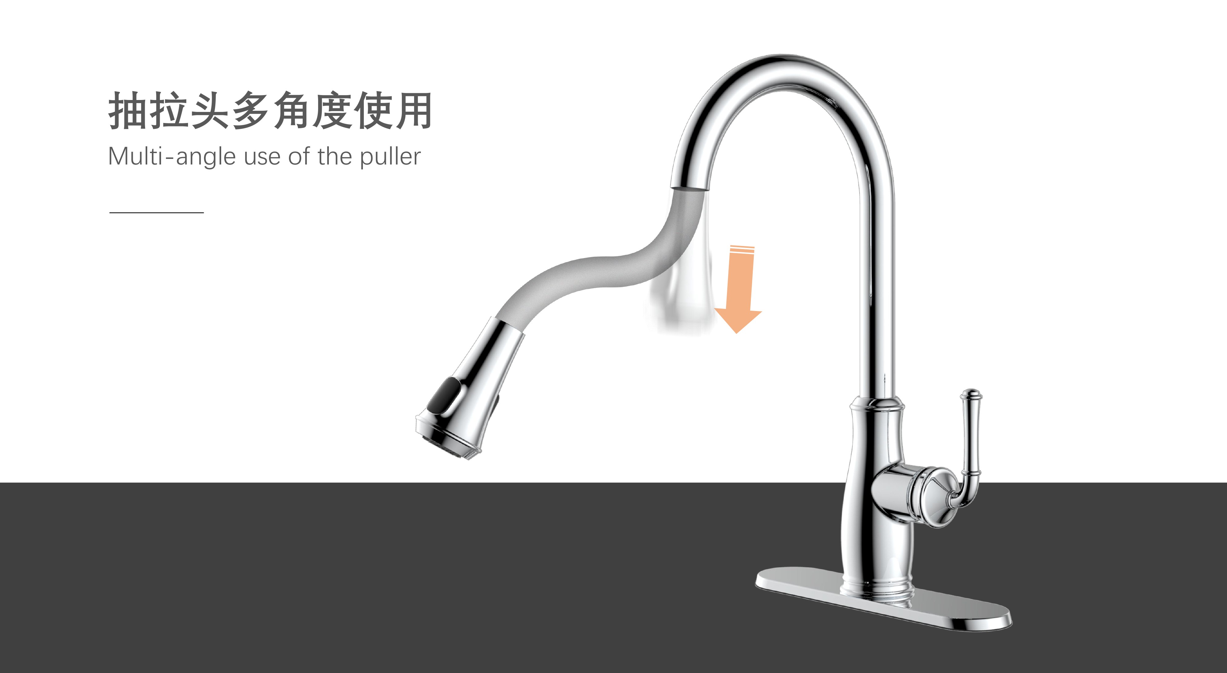 古典廚房龍頭;抽拉頭隨意抽拉多角度使用;采用全密封防水端頭;水力發(fā)電技術,智能芯片溫度數(shù)顯-冷水TEMP顯示藍色、溫水TEMP顯示綠色、熱水TEMP顯示紅色